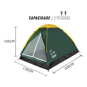 Descrição do Produto:Barraca Iglu Retiro Camping Impermeavel Para 2 Pessoas com Protetor Chuva e Tela mosqueteiro com bolsa de transporteA Barraca Iglu Retiro Camping Impermeavel Para 2 Pessoas com Protetor Chuva e Tela mosqueteiro com bolsa de transporte é um modelo ideal para passeios e camping com a família, pois abriga tranquilamente até 2 pessoas em seus respectivos sacos de dormir. É uma barraca tipo Iglu, leve, compacta, fácil de montar e cabe confortavelmente pessoas de estatura alta.Sua estrutura é feita com varetas de fibra de vidro conectados com elástico interno, o material do piso é confeccionado com polietileno de alta resistência e antifungo.Internamente, possui bolso para organização de objetos menores, paredes compostas de poliéster respirável, tornando uma barraca fresca e confortável.Uma barraca projetada para ser resistente, pois em sua composição conta com materiais de alta qualidade, é um modelo desenvolvido para climas secos e frios.Características:- Material Estrutura: Varetas de fibra de vidro interligadas por elástico interno- Material Interior: Poliéster respirável- Material Piso: Polietileno de alta resistência- Material Sobreteto: 100% Poliéster impermeabilizado com poliuretano- Tipo: Barraca iglu com sobreteto completo- Medidas C - L - A : 2mt x 1,30mt x 1,05 mtImagens meramente ilustrativas