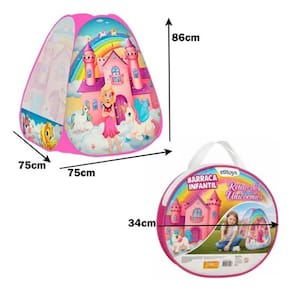As melhores lembranças que a gente pode ter certamente estão associados com momentos de diversão e descontração, seja tirando um lazer, jogando, assistindo, praticando esportes ou qualquer outra atividade que gostamos. Na infância isso é muito mais frequente, sendo uma prática muito importante para o desenvolvimento infantil. Tendo em vista que momentos de diversão são importantes para o desenvolvimento das crianças, que tal estimular a imaginação dos pequenos levando para ele um pouco da época feudal? A Barraca Infantil Triangular Unicórnios é perfeita para os momentos de diversão da criançada. Com estampa descontraída, ela traz um sentimento delicado para as brincadeiras. Além disso, seu design compacto possibilita com que lugares se transformem em um verdadeiro reino. Ideia: Tente elaborar dinâmicas para que a sua criança se divirta, incentivando a imaginação e a interatividade.BARRACA INFANTIL TRIANGULAR UNICÓRNIOSDimensões da Peça: 86 x 75 x 75cmTipo de Embalagem: ShrinkMaterial: PoliésterMarca: EtitoysCor: Rosa com estampas do reino dos unicórniosContém: 1 unidadeAdvertência/Atenção:Não recomendável para crianças menores de 03 (Três) anos por conter parte(s) pequena(s) que pode(m) ser engolida(s) ou aspirada(s)Para evitar o perigo de asfixia, manter esta embalagem longe do alcance das criançasEsta embalagem contém fechos metálicos, retirar antes de entregar o brinquedo a criançaIndicação:Este produto é indicado para crianças a partir de 36 mesesCertificado e Autorização para uso do Selo de Identificação e Conformidade na norma brasileira.CERTIFICADO: CE- BRI/INNAC - 02379-08ANM 300/2002OCP 0061