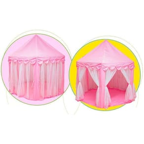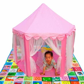 Você vai se impressionar com a alegria que a tenda princesa vai proporcionar para as crianças, ela possui as laterais em tecido tipo tule permitindo a ventilação e também ajudando na supervisão das crianças, também pode amarrar as laterais para que ela fique toda aberta, o teto e a base da barraca é fabricado com tecido poliéster sintético antialérgico para que a brincadeira se prolongue com segurança, as hastes que mantém a estrutura da barraca em pé é feita de pvc permitindo flexibilidade e resistência!