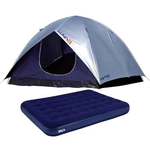Se você busca uma solução completa para suas aventuras ao ar livre, a combinação da Barraca para Camping LUNA da MOR com o Colchão de Casal Inflável KALA é a escolha perfeita. Essa dupla une conforto, praticidade e segurança, proporcionando uma experiência diferenciada tanto em acampamentos quanto em momentos de lazer no quintal ou até mesmo como solução prática para visitas em casa. A Barraca LUNA foi desenvolvida para oferecer proteção extra contra vazamentos, graças ao sobreteto que vai até o chão e ao revestimento em silvercoating, que ajuda a refletir a luz solar, mantendo o interior mais fresco e agradável. Além disso, conta com FPS 100, ideal para quem procura maior proteção contra os raios solares durante a estadia ao ar livre. Projetada para acomodar até 6 pessoas, possui mosquiteiros na porta, no teto e na janela traseira, além de suporte interno para lanterna, tornando-a prática e funcional para noites no camping. Já o Colchão de Casal Inflável Azul da KALA garante noites de descanso com conforto e praticidade. Sua superfície aveludada impede que os lençóis deslizem, e sua estrutura interna de bolsas de ar oferece suporte adequado ao corpo, aliviando pontos de pressão e melhorando a qualidade do sono. É fácil de inflar e esvaziar, compacto para guardar e transportar, perfeito para casais que buscam conforto mesmo em ambientes temporários. Juntos, esses dois produtos formam um kit versátil, que atende desde famílias que gostam de acampar até pessoas que precisam de soluções rápidas e funcionais para acomodar convidados. Além disso, unem durabilidade e qualidade de duas marcas reconhecidas: MOR e KALA.
