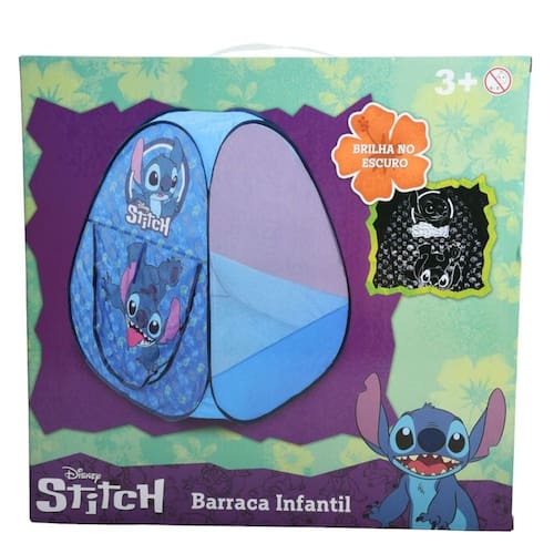 Barraca infantil do Stitch é um produto que combina diversão e praticidade Ideal para o quarto ou espaços abertos, ela pode ser montada com facilidade e ainda é luminosa no escuro Com tela nas laterais e atrás, os pais podem acompanhar a brincadeira das crianças de perto, tornando tudo ainda mais seguro e divertido
