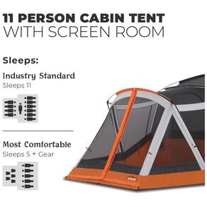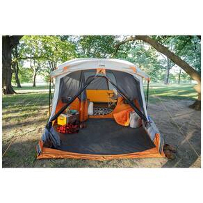 Acomoda 11 pessoas Se encaixa três colchões de ar queen Altura central 86 Apresenta sala de tela frontal com painéis de janela que podem ser fechados e cobertura completa do piso da barraca Tecnologia de bloco CORE H20 e aberturas de solo ajustáveis Gear loft com gancho de lanterna e bolsos mantêm os itens organizados e fora do chão da barraca Porta de acesso ao cabo elétrico a porta pode ser totalmente fechada quando não estiver em uso Inclui barraca, postes de barraca, mosca de chuva, loft de equipamentos, estacas de barraca, bolsa de transporte Marca: Não Informado