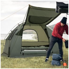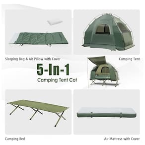 All in 1 Camping Combo Combinando uma tenda com uma cama de campismo, o nosso berço de tenda é económico. Vem com um conjunto completo de roupa de cama que inclui 1 saco de dormir, 1 colchão de ar e 1 travesseiro inflável tanto a capa do colchão quanto a capa do travesseiro são fornecidas. E também fornecemos uma bomba de pé e outros acessórios necessários. Design resistente às intempéries Feita de tecido de poliéster de alta densidade, esta barraca é à prova dágua para resistir às intempéries, o que é ideal para pesca, caminhadas, camping ou outras atividades ao ar livre. E a estrutura de metal é estável o suficiente com uma alta capacidade de carga de 136 kg. Acima da Terra A estrutura de metal resistente da cama de acampamento permite que a barraca lide com superfícies irregulares da estrada, mantendo a a acima do solo. Este design pode efetivamente manter se afastado do solo ao ar livre e evitar a interferência de animais. Fácil de montar e desmontar Com instruções de montagem detalhadas e todo o hardware entregue, é fácil montar sua cama de barraca em alguns minutos. Tanto a barraca quanto a cama de camping são dobráveis, o que economiza muito espaço quando não está em uso. E um saco de rodas livre permite que o conjunto de tendas seja fácil de transportar para qualquer lugar Marca: Não Informado