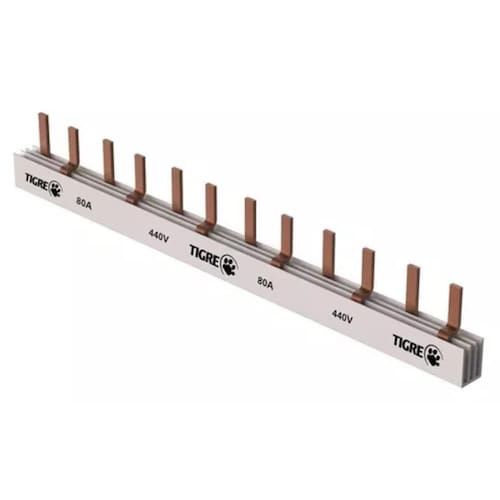 Aplicações: montagem elétrica de baixa tensão até 80a nointerior dos quadros de distribuição para obras e reformasresidenciais, industriais e comerciais.1. Matéria-prima: cobre eletrolítico.2. Corrente elétrica máxima: 80a3. Tensão elétrica máxima: 440v4. Tampa externa em nylon anti-chama5. Isolador de pino em pvc anti-chama6. Para disjuntores modelo din7. 12 ligações dinsegurança:- as partes condutoras estão isoladas do contatocom instaladores ou usuários, evitando acidentes.- atende as normas nbr 60998-1.Durabilidade:- confeccionado em material de alta qualidade cobre eletrolítico e pvc garante alta durabilidadeao produto.- produto 100% reciclável.Fácil instalação:- encaixe e parafusamento direto no borne dodispositivo de proteção.Dúvidas frequentes:- para quantos disjuntoresR: tem 12 pinos para conexão dos disjuntores.- qual a corrente máximaR: corrente elétrica máxima de 80a.- qual a tensão máximaR: tensão máxima de 440v.- qual matéria-primaR: cobre eletrolítico..- atende as normas nbr 60998-1oR: sim, atende.Carrapeta, aqui tem qualidade
