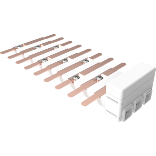 Oferece grande segurança contra curtos acidentais. A principal vantagem desse modelo é a segurança no manuseio. Com isolamento de 1KV e uso de PU Rígido antichamas, as partes que recebem corrente elétrica ficam totalmente isoladas. O isolamento pode ser feito por barras isoladas para montagem, projeto com curvas e fixações e em equipamentos já montados. Neste último caso, há possibilidade de serem instalados em componentes em funcionamento ou não. Barramentos de cobre não isolados Os barramentos de cobre não isolados podem transmitir maiores quantidades de energia e são utilizados em instalações que não serão, com frequência, manuseadas ou acessadas por pessoas sem treinamento profissional na área.
