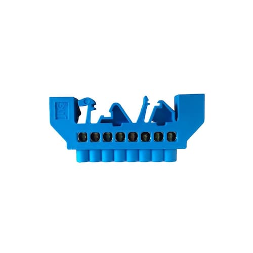Com 8 módulos, o barramento permite uma conexão organizada e prática para sistemas de distribuição de energia elétrica, otimizando a utilização de espaço.