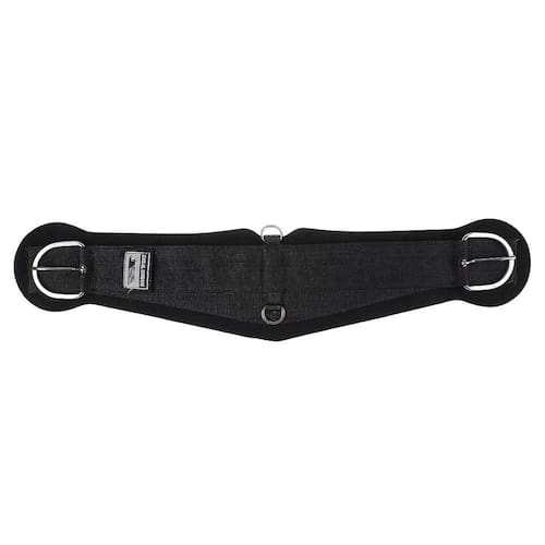 Barrigueira Air Flex de 32 Rodeo West modelo larga fabricada em EVA (espuma vinílica acetinada) com revestimento em tecido de poliéster, possui nylon reforçado com fivelas e argolas em aço inox e tira autocolante que permite a troca do refil. Sua estrutura permite a passagem do ar por toda a barrigueira, além de diminuir o acúmulo de sujeira e areia que podem causar assaduras no animal.