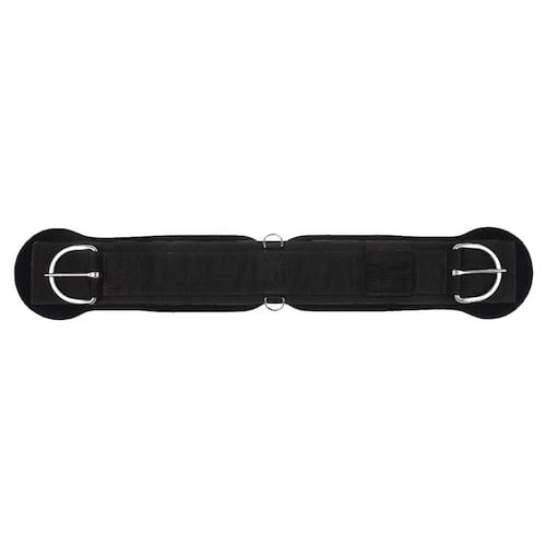 Barrigueira Air Flex de 32 Rodeo West modelo reta fabricada em EVA (espuma vinílica acetinada) com revestimento em tecido de poliéster, possui nylon reforçado com fivelas e argolas em aço inox e tira autocolante que permite a troca do refil. Sua estrutura permite a passagem do ar por toda a barrigueira, além de diminuir o acúmulo de sujeira e areia que podem causar assaduras no animal.
