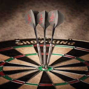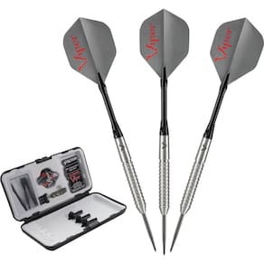 - Inclui um conjunto adicional de hastes de nylon convexo, voos, protetores de voo e uma chave mecânica de dardo; cada dardo de ponta de aço pesa 22 gramas