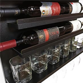 Com capacidade aproximada para 6 garrafas, 6 copos, 6 taças e 4 garrafas de vinho, esse barzinho ocupa muito pouco espaço em seu ambiente, permitindo que você organize suas bebidas e taças de forma prática e funcional.