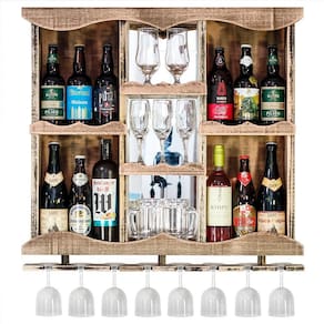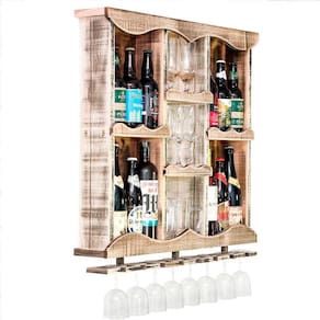Barzinho em Madeira Maciça com Cristaleira na parte Central e Porta TaçasCor Rústica (Envelhecida)- Fabricado em Madeira Maciça, Certificada e Sustentável;- Cristaleira na parte Central com Espelho ao fundo;- Comporta até 12 Garrafas, 8 Taças e vários copos na cristaleira;- Dimensões do Produto: 75cm de Altura, 80cm de comprimento e 12cm de Largura;- Acompanha Kit de Fixação;- O produto é enviado MONTADO, com o Porta Taças destacado.Garrafas e Taças não Acompanham o Produto Marca: Delenha Decor