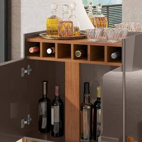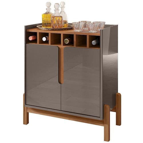 Barzinho Com 2 Portas e Adega Para Sala de Jantar 50522, com seu design moderno, irá levar versatilidade e charme à seu cômodo, seja ele, sala de jantar ou sala de estar. Possui estrutura em MDF de 15mm, MDP de 15mm e 25mm, 02 portas de MDF usinadas com detalhe curvo e dobradiças com sistema soft-close, para um fechamento mais suave, o que permite uma ótima experiência em seu uso diário, além disso, possui 06 adegas embutidas, para manter suas garrafas preferidas na posição horizontal, Sua pintura conta também com acabamento Print Wood, patenteado e exclusivo Casa D, garante ao produto maior qualidade e durabilidade como nenhuma no mercado possui. Suporta até 32 kg distribuídos, possibilitando a disposição de seus objetos, apesar de compacto, seu espaço interno e externo permitem armazenamento de diversos itens. Para maior segurança, os pés são elaborados em madeira maciça (Pinus) com pintura laqueada e sapatas para evitar riscos no piso no qual for instalado. Além de garantir um visual contemporâneo, tudo isso priorizando a segurança e o charme que seu ambiente necessita. Este móvel chegará em sua casa separado em 01 volume.