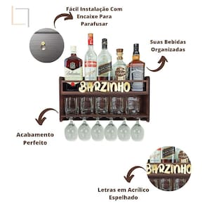 Barzinho de parede alta qualidade com porta taça porta copos Nosso barzinho de parede veio para somar no seu espaço e ainda conseguir manter tudo organizado e fácil de localizar. Com capacidade para 6 taças, copos e garrafas.