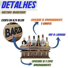 Barzinho de Parede - Boteco - 60 x 26 Nogueira Se você está a procura de algo DIFERENCIADO, BONITO, e com acabamento de PRIMEIRA acabou de encontrar. Impressione á todos deixando suas bebidas bem visíveis e organizadas com o nosso BARZINHO de PAREDE.O mdf na cor Nogueira torna a peça Especial, pois seus veios imitam muito bem a Madeira Natural.E pra completar, ocupa pouquíssimo espaço em seu ambiente. Criamos produtos Diferenciados, Criativos e Exclusivos pra quem é realmente não quer mais do mesmo que todos Oferecem.E o nosso Barzinho de Parede segue essa linha.Feito em Mdf 15mm, o que torna a peça bem firme e visualmente muito Bonita.O desenho e a cor da chapa dão um acabamento INCRÍVEL á peça, que dessa forma é capaz de deixar qualquer ambiente muito mais Aconchegante e Agradável.Além de decorar muito bem qualquer ambiente, ele também pode ser um ÓTIMO PRESENTE.Não Perca Tempo........... Principais Características: Feito 100% em Mdf 15mm Bilaminado Capacidade Aproximada para 6 Garrafas + 6 Copos Dimensões: 60cm de largura x 26cm de altura x 13cm de profundidadeAcompanha parafusos e buchas para fixação. Indicações de Uso:Pubs Home Bar Varandas e Sacadas com temática Gourmet Cozinhas Salas em Geral ChurrasqueirasObs: Imagem Meramente Ilustrativa, Copos, Garrafas e Demais Acessórios Não Acompanham o Produto