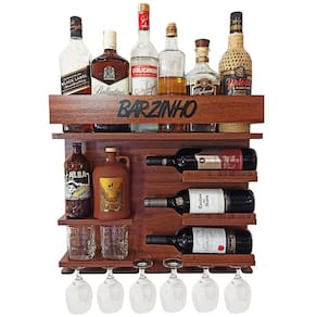 Suas bebidas agora bem mais visíveis e organizadas com o nosso BARZINHO de PAREDE. Peça em MDF Bilaminado que torna a peça Especial, pois seus veios imitam muito bem a Madeira Natural.E pra completar, ocupando pouquíssimo espaço em seu ambiente, você consegue organizar suas bebidas e taças. Capacidade Aproximada para 6 Garrafas + 4 Copos ou garrafas pequenas + 6 Taças + 3 Garrafas de VinhoMDF com espessura de 15mm, o que torna a peça bem firme e visualmente muito Bonita.Além de decorar muito bem qualquer ambiente, ele também pode ser um ÓTIMO PRESENTE. Principais Características: • Feito 100% em Mdf 15mm Bilaminado • Capacidade Aproximada para 6 Garrafas + 4 Copos + 6 Taças + 3 Garrafas de Vinho • Dimensões: 54cm de largura x 51cm de altura x 13cm de profundidade Acompanha parafusos e buchas para fixação. Indicações de Uso: PUB’s Home Bar Varandas e Sacadas com temática Gourmet CozinhasSalas em GeralChurrasqueiras Obs: Imagem Meramente Ilustrativa, Copos, Garrafas e Demais Acessórios Não Acompanham o Produto