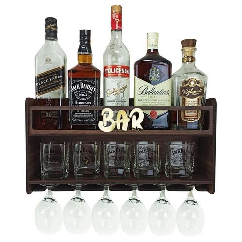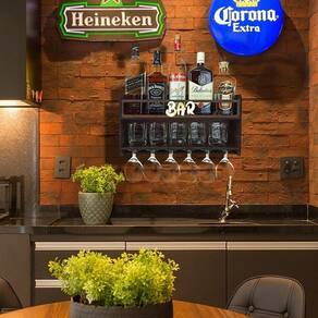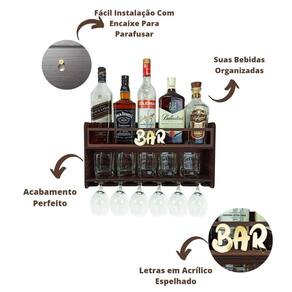 Barzinho de Parede Aparador Para Bebidas Para Sala Tema Bar - 49x26 Cor Louro Preto BARZINHO DE PAREDE Com capacidade para 6 taças, copos e garrafas.