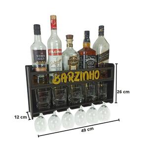- Medida Total do Barzinho: 49 cm de comprimento x 26 cm de altura x 12 cm de profundidade - Espaço para copos : 46 cm de comprimento x 11,5 cm de altura x 11,5 de profundidade - Capacidade de taças : 6 taças -capacidade de copos: 5 copos