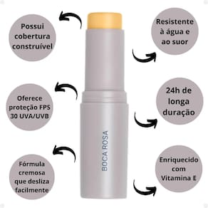A base é multifuncional, fácil de aplicar e ideal para todos os tipos de pele. São três funções - base, contorno e corretivo. Disponível em 50 tonalidades que celebram a pluralidade de cada tom de pele, pioneira em representar a brasilidade. Possui cobertura construível - de nível a alta - sem causar ressecamento ou deixar a pele oleosa. Com sua fórmula cremosa que desliza facilmente, garante aplicação rápida e um efeito iluminado maravilhoso. Enriquecido com Vitamina E (ativo antioxidante) , resistente à água e ao suor, 24h de longa duração, oferecendo proteção FPS 30 UVA/UVB, auxilia na proteção contra a Luz Azul, além de ser livre de parabenos e não comedogênico.