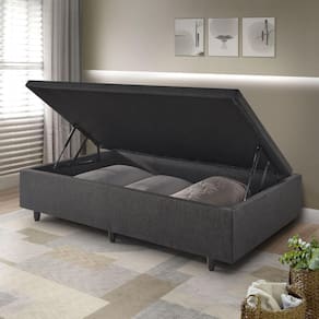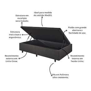 Com revestimento em Linho Cinza, a higienização é facilitada e seu acabamento protege o baú de qualquer deformidade por impacto externo.