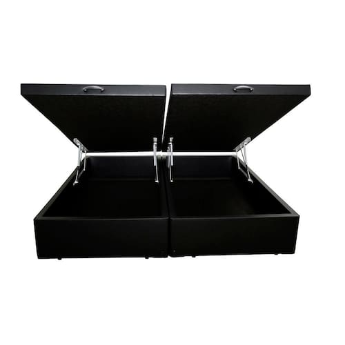Base Box Baú Casal Bipartido Belos Sonhos Sintético Preto 41x138x188