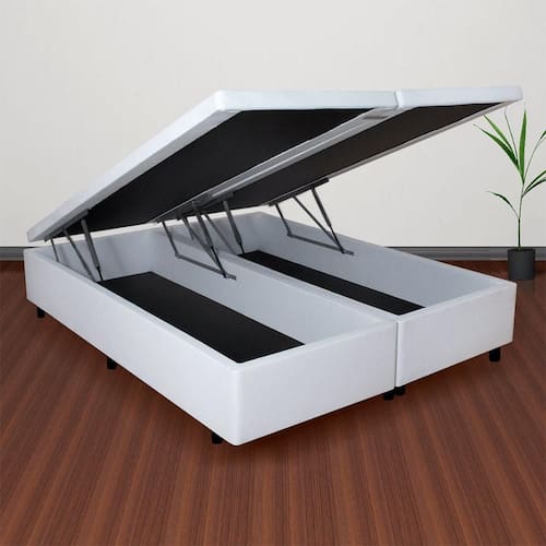 Baú King Californiano 178 O manuseio do baú é bastante simples, não tem desculpa para não organizar, com pistões a gás. Com revestimento em Courino Linho Branco, a higienização é facilitada e seu acabamento protege o baú de qualquer deformidade por impacto externo