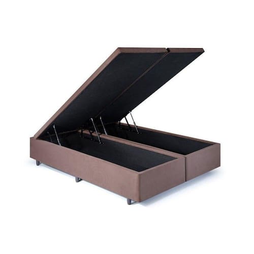 Base Box Baú King 193x203x42cm em Suede com Pistão a Gás Marrom
