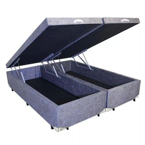 Base Box Baú King Bipartido Suede Cinza 39x198x203