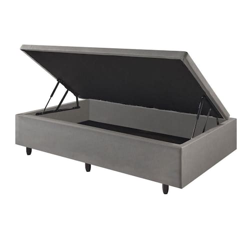 Base Box Baú Solteirão 96x203x42cm Corino Linho Cinza