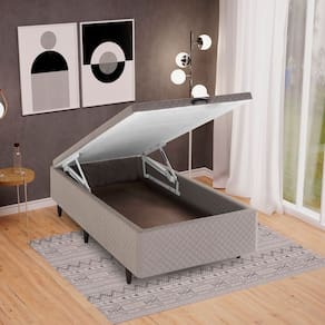 A Cama Box Baú Merida possui um grande diferencial em seu tampo, visto que a possibilidade de sua abertura proporciona a utilização interna como baú para guardar objetos otimizando o espaço. A estrutura é composta por Madeira de Eucalipto, classificada Oriunda de Reflorestamento e secada em estufa antes de ser beneficiada. Já a parte superior dispõe de uma Chapa Compensada Multilaminada de 4mm, montadas com grampos de aço e fixa com cola PVA (própria para madeira). Estas características proporcionam grande resistência e evitam ringidos no produto. Cama Baú com Pés Injetados em Poliuretano Expandido (pés Fixos de 11cm). O sistema de abertura é feito a partir de molas que oferecem suporte à tampa. Acompanha Cama Auxiliar: Não Ambiente Principal: Quarto Cantoneiras: Não Cor: Bege Cor do Produto: Bege Itens Inclusos: 1 Base Box Baú Material da Estrutura: Madeira de Eucalipto Material dos Pés: Plástico Necessita Montagem: Não Origem do Produto: Nacional Peso: 43.2 Possui Baú: Sim Recomendações de Uso, Manutenção e Limpeza: A limpeza do produto deve ser a seco. Não molhar o produto e/ou expor ao sol. Em caso do produto molhar, a secagem deve ser realizada com vento frio, para evitar danificar o material. Revestimento da Base Box: Tecido Plano Tamanho do Produto: Solteiro