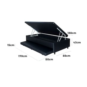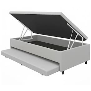 Base Box Baú Solteiro com Auxiliar Suede 43x188x88 Alto Nivel A Base Box Baú Solteiro com Auxiliar Suede 43x188x88 Alto Nivel oferece uma solução prática e inteligente para otimizar espaços, ideal para quem busca funcionalidade em um único móvel. Além do generoso compartimento interno do baú para armazenamento, ela conta com uma cama auxiliar que se revela facilmente, perfeita para visitas ou para ter uma opção extra de descanso. O grande diferencial está na fina camada de espuma que reveste a cama auxiliar, proporcionando um toque de conforto sutil, mas perceptível, para um repouso mais agradável sem comprometer a praticidade e o design compacto do conjunto. Essa combinação de praticidade e conforto reflete uma nova abordagem para o mobiliário contemporâneo, onde as necessidades de espaço e bem-estar se unem. É a prova de que design e funcionalidade podem coexistir em harmonia, adaptando-se às mais diversas rotinas e estilos de vida.\nMedidas\nAltura 43 cm\nLargura 88 cm\nComprimento 188 cm\nCaracterísticas\nModelo Base Box Baú Solteiro com Auxiliar Suede\nTipo do produto Base Box Baú Solteiro com Auxiliar\nFabricante Alto Nível\nEstrutura Madeira Pinus\nTamanho Solteiro\nRevestimento Tecido Suede\nPés com Rodízio Não\nGarantia 3 meses\nInformações Importantes\nObjetos decorativos que porventura apareçam na foto, não acompanham o produto. Não nos responsabilizamos pela montagem/instalação dos produtos.\nMontagens, desmontagens e instalações são responsabilidades do cliente. Indicamos que contrate uma empresa de montagem ou um montador de sua confiança.\nAlém disso, favor verificar se os pés e acessórios estão dentro do forro inferior do produto. Em suma, todas as informações divulgadas sobre o produto são de responsabilidade do Fabricante.\nAs cores do produto podem variar de acordo com o seu monitor, a iluminação do ambiente em que você está e até mesmo a sua percepção visual. Além da cor, pequenos detalhes e acabamentos podem não ficar evidentes na foto, por isso as imagens são meramente ilustrativas.