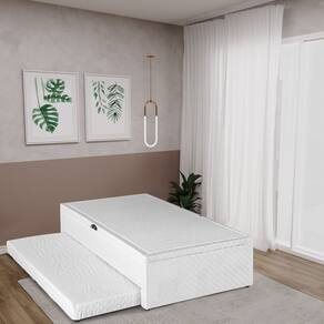 Base Box Baú Solteiro com Colchão Auxiliar 88x188x48cm Detroit Branco