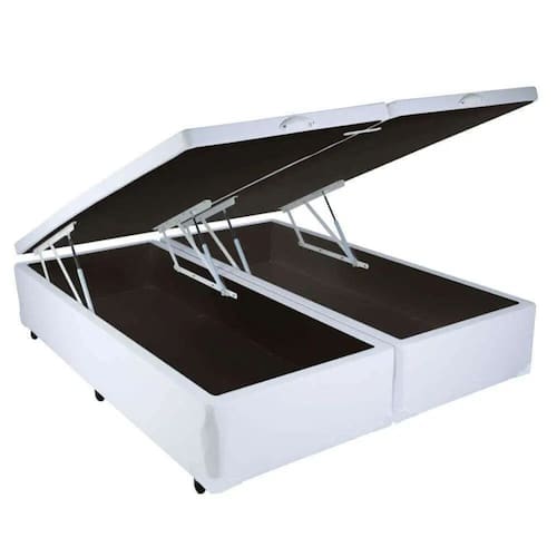 Base Box Bipartida Baú Universal Casal 43x188x138 Tecido Corino Mais uma ótima opção para você que gosta de um cômodo organizado e com um visual impecável: A Base Box Bipartida Baú Universal Casal 43x188x138 Tecido Corino é um modelo que você poderá armazenar travesseiros ou cobertas em seu Baú, assim você economiza espaço no quarto com muita facilidade, basta levantar o box com muita facilidade devido ao seu sistema de pistão a gás anti-impacto. Aproveite essa oportunidade!\nMedidas\nAltura 43 cm\nComprimento 188 cm\nLargura 138 cm\nCaracterísticas\nModelo Base Box Bipartida Baú\nTipo do produto Base Box\nFabricante Alto Nível\nMaterial Madeira de Reflorestamento\nTamanho Casal\nColchão Indicado 138 cm x 188 cm\nTecido Revestimento Corino\nTipo de Tratamento Antialérgico, Antimofo e Antiácaro\nTipo de Pistão Pistão a Gás\nPossui Pés Sim\nGarantia 3 meses\nAcompanha Colchão Não\nInformações Importantes\nObjetos decorativos que porventura apareçam na foto, não acompanham o produto. Não nos responsabilizamos pela montagem/instalação dos produtos.\nMontagens, desmontagens e instalações são responsabilidades do cliente. Indicamos que contrate uma empresa de montagem ou um montador de sua confiança.\nAlém disso, favor verificar se os pés e acessórios estão dentro do forro inferior do produto. Em suma, todas as informações divulgadas sobre o produto são de responsabilidade do Fabricante.\nAs cores do produto podem variar de acordo com o seu monitor, a iluminação do ambiente em que você está e até mesmo a sua percepção visual. Além da cor, pequenos detalhes e acabamentos podem não ficar evidentes na foto, por isso as imagens são meramente ilustrativas.