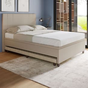 Descubra o novo padrão de luxo com nossa Cama Box com Auxiliar - a fusão perfeita entre praticidade, sofisticação e conforto supremo. Criada com madeira de reflorestamento e envolta em um revestimento de veludo, corino ou linho de alta qualidade, esta cama não só emana elegância, mas também promove sustentabilidade ambiental. Ideal para quartos de luxo, sua estrutura reforçada oferece durabilidade incomparável e suporte excepcional. Transforme seu espaço de descanso em um oásis de conforto e estilo com nossa Cama Box com Auxiliar - a escolha definitiva para os que buscam o melhor em cada detalhe. OBS: A cama Auxiliar já vem com o colchão conjugado de 83 x 1,76