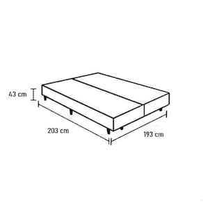 Altura com Pés: 43 cm Altura sem Pés: 30 cm Largura: 193 cm Profundidade: 203 cm Peso: 16 kg