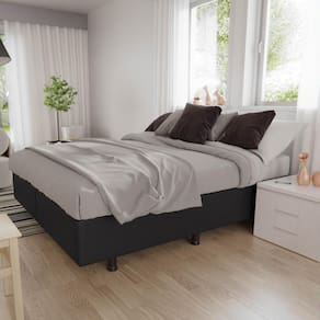 Para uma noite de sono tranquila e revigorante é necessário um bom colchão box; porém para que a experiência seja completa, o colchão pede uma base igualmente cheia de benefícios, como a Base Box para Cama Casal King 192x203cm Bipartido Liz S05 Sintético Preto, da Mpozenato. Vem conferir!