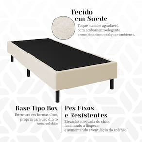 CARACTERÍSTICAS TÉCNICAS Tipo: Base Cama Box Tamanho: Solteiro Revestimento: Suede Cor: Bege