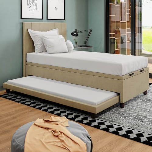 Desfrute de momentos agradáveis de repouso em um ambiente bem organizado e adaptável às suas necessidades, proporcionando o máximo de conforto. Pensando nisso, criamos um móvel que combina praticidade e otimização de espaço, sendo incrivelmente funcional. Com nossa Cama Box Baú Solteiro com Cama Auxiliar. Ela não acompanha o colchão. Além de desfrutar de noites de sono excelentes, você pode armazenar uma variedade de itens que normalmente ocupariam seu guarda-roupa, como cobertores, travesseiros e edredons, tornando seu espaço mais eficiente e aproveitando ao máximo os demais móveis do quarto. Além disso, a cama auxiliar embutida oferece uma solução adicional para acomodar hóspedes de forma prática e confortável. Invista nesse móvel e tenha a garantia de adquirir um produto de alta qualidade, refinamento e estilo. Não acompanha colchão.