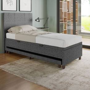 Base Cama Baú Solteiro com Cama Auxiliar c/colchão conjugado Linho SkyBox - Preto