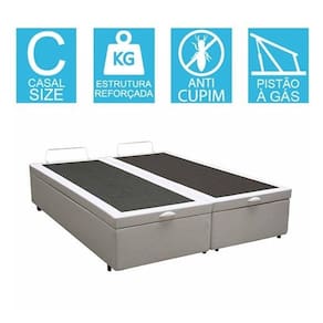 Feita com madeira reforçada 100% de reflorestamento, acabamento em tecido Couro Sintético, pistões à gás para uma abertura muito fácil, tratamento antialérgico e antiácaro, pés em madeira, estrutura recomendada para até 200kg distribuidos no box.