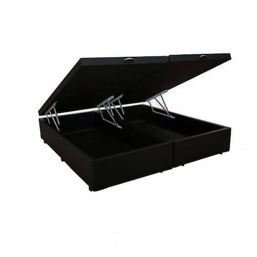 Feita com madeira reforçada 100% de reflorestamento, acabamento em tecido Suede, pistões à gás para uma abertura muito fácil, tratamento antialérgico e antiácaro, pés em madeira, estrutura recomendada para até 200kg distribuidos no box.