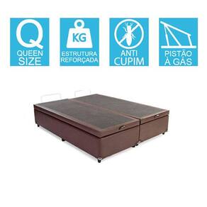 Linda Base Cama Box Baú Bipartido Queen Size 43x158x198 em Corino Marrom. Ideal para quem busca boas noites de sono e modernidade para o quarto.