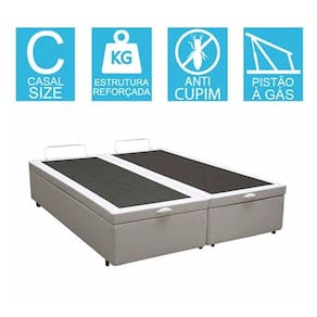 _x000D_ Feita com madeira reforçada 100% de reflorestamento, acabamento em tecido Couro Sintético, pistões à gás para uma abertura muito fácil, tratamento antialérgico e antiácaro, pés em madeira, estrutura recomendada para até 200kg distribuidos no box. Blindagem em chapa de madeira de 4mm.