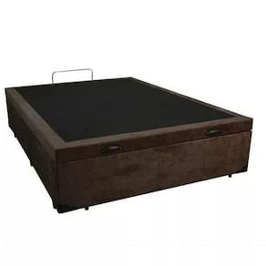 Linda Base Cama Box Baú Blindado Casal Suede Marrom 43x138x188. Ideal para quem busca boas noites de sono e modernidade para o quarto.