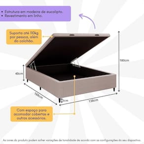 - Nome do Produto no Fornecedor: Base Cama Box Baú Casal para Colchão 138x188cm Multimóveis CR35239 Bege