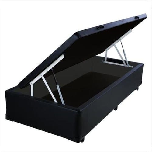 Base Cama Box Baú Solteiro Sintético Preto RC Sono Leve 42x88x188