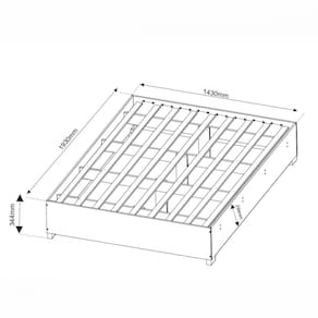 Características: - Estrutura em MDP 15 mm e MDF 15/18 mm - para colchões com 138 cm x 188 cm - Acabamento/Pintura: UV, Semi-Brilho - 4 sapatas plásticas de 50 mm - Suporte de peso individual: 120kg - Garantia: 3 meses