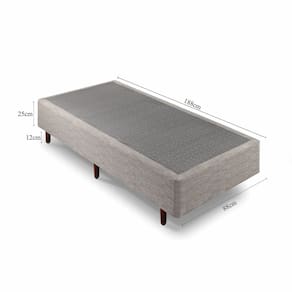 Seu revestimento em tecido confere um toque de elegância ao ambiente, enquanto a superfície com tecido antiderrapante proporciona maior segurança e estabilidade para o colchão. Os pés em madeira maciça são equipados com reguladores de altura, permitindo ajustar a base conforme a necessidade do seu ambiente.