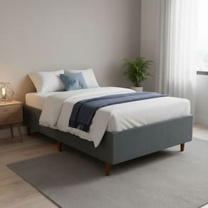 Ficha Técnica Detalhada: CaracterísticaEspecificaçãoProdutoBase para Cama BoxTamanhoSolteiro PadrãoCompatibilidade de Colchão88 cm x 188 cmCorCinzaMedidas da Base (L x A x P)88 cm x 25 cm x 188 cmAltura dos Pés12 cmAltura Total (Base + Pés)37 cmMaterial da EstruturaMadeira de Eucalipto Reflorestada e TratadaRevestimentoTecido SuedeMaterial dos PésMadeira Maciça com Sapatas ProtetorasPeso SuportadoAté 150 kg por pessoa O que você vai receber: 1 Base para Cama Box Solteiro na cor Cinza1 Kit com 6 pés de madeira rosqueáveis OBSERVAÇÕES IMPORTANTES: