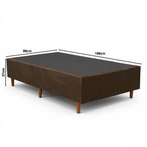 Ficha Técnica Detalhada: CaracterísticaEspecificaçãoProdutoBase para Cama BoxTamanhoSolteiro PadrãoCompatibilidade de Colchão88 cm x 188 cmCorMarromMedidas da Base (L x A x P)88 cm x 25 cm x 188 cmAltura dos Pés12 cmAltura Total (Base + Pés)37 cmMaterial da EstruturaMadeira de Eucalipto Reflorestada e TratadaRevestimentoTecido SuedeMaterial dos PésMadeira Maciça com Sapatas ProtetorasPeso SuportadoAté 150 kg por pessoa   O que você vai receber: 1 Base para Cama Box Solteiro na cor Marrom1 Kit com 6 pés de madeira rosqueáveis OBSERVAÇÕES IMPORTANTES: