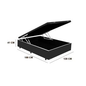 Base Cama Box Viúva Baú 41x188x128 Se é praticidade e qualidade que você está em busca, essa incrível Base Cama Box Viúva Baú 41x188x128 é perfeita para você! Resistente e durável, ela conta com estrutura fabricada em madeira eucalipto que irá garantir uma longa vida útil ao móvel. Além disso, o revestimento conta com tratamento antiácaro, antialérgico, antibactéria, antifungos e antimofo, que garante não só um acabamento mais sofisticado, como também mais segurança e tranquilidade para suas noites, principalmente para quem sofre com problemas respiratórios, pois inibem a proliferação de fungos e bactérias.\nMedidas\nAltura 41 cm\nComprimento 188 cm\nLargura 128 cm\nCaracterísticas\nModelo Base Cama Box Viúva\nTipo do produto Base Box\nAmbiente Quarto\nMaterial Madeira de Eucalipto\nTamanho Viúva\nTipo de Proteção Antiácaro, Antimofo e Antialérgico\nTipo de Pés PVC Reforçado\nPossui Pés Sim\nAcompanha Colchão Não\nPossui Puxador Sim\nGarantia 3 meses\nInformações Importantes\nObjetos decorativos que porventura apareçam na foto, não acompanham o produto. Não nos responsabilizamos pela montagem/instalação dos produtos.\nMontagens, desmontagens e instalações são responsabilidades do cliente. Indicamos que contrate uma empresa de montagem ou um montador de sua confiança.\nAlém disso, favor verificar se os pés e acessórios estão dentro do forro inferior do produto. Em suma, todas as informações divulgadas sobre o produto são de responsabilidade do Fabricante.\nAs cores do produto podem variar de acordo com o seu monitor, a iluminação do ambiente em que você está e até mesmo a sua percepção visual. Além da cor, pequenos detalhes e acabamentos podem não ficar evidentes na foto, por isso as imagens são meramente ilustrativas.